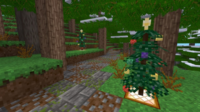Наш дедушка Гендальф взмахнул своим посохом и сотворил настоящее чудо. На гномьем спауне появилась дорожка, украшенная новогодними елями, сверкающими, будто их украсили сами звёзды Средиземья.